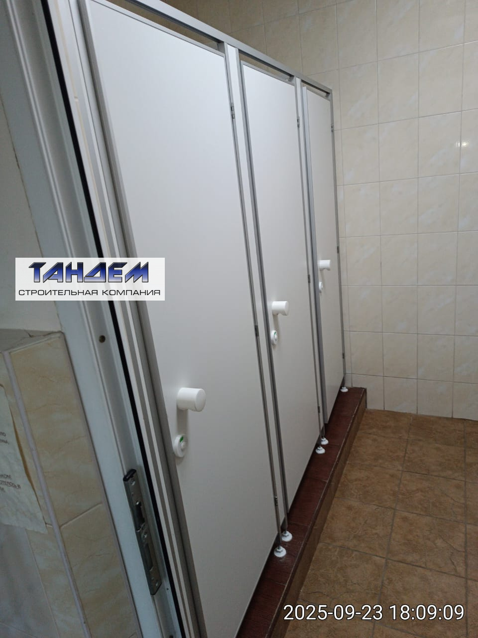 Изготовление и установка сантехнических кабинок ЛДСП 16 мм цвет-белый . Профильная база анодированный алюминий. Фурнитура : ручка и завертка комплекты -белый пластик , петли металлические-по 3 шт на дверь., опоры средние цвет белый .